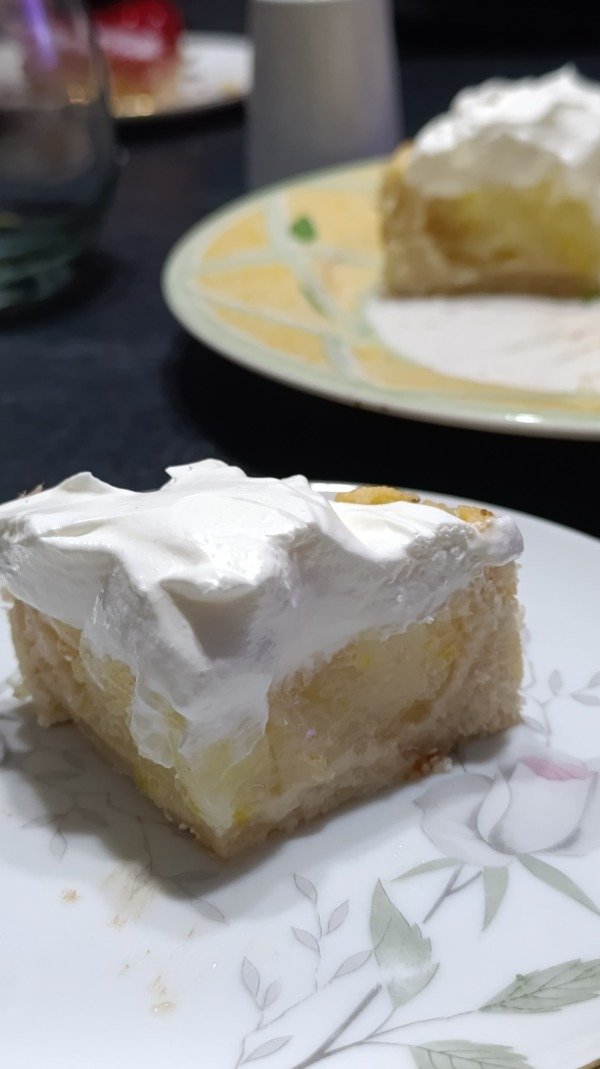 Masa sablee. Relleno de curd de limón. Cubierto de crema.